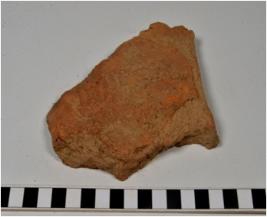 | Description / विवरण | A fragment of a terracotta tile of coarse fabric and rough surface. |
