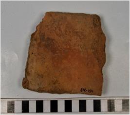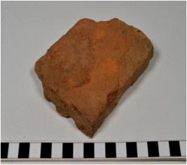 | Description / विवरण | A fragment of a terracotta tile, rough surface of coarse fabric. |