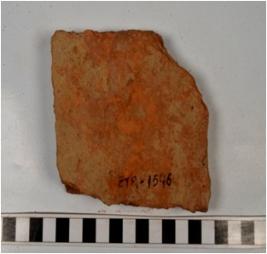 | Description / विवरण | A fragment of a terracotta tile of coarse fabric and rough surface. |