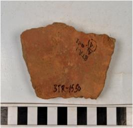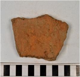 | Description / विवरण | A fragment of a terracotta tile of coarse fabric and rough surface. |
