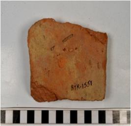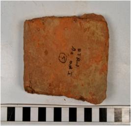 | Description / विवरण | A fragment of a terracotta tile of coarse fabric and rough surface. |