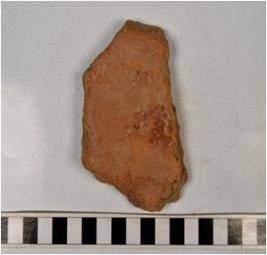 | Description / विवरण | A fragment of a terracotta tile of coarse fabric and rough surface. |