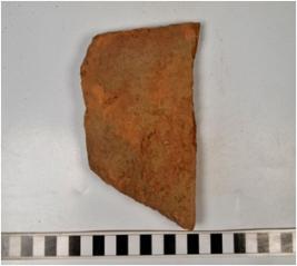 | Description / विवरण | A fragment of a terracotta tile of coarse fabric and rough surface. |