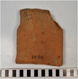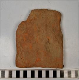 | Description / विवरण | A fragment of a terracotta tile of coarse fabric and rough surface. |