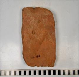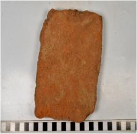 | Description / विवरण | A fragment of a terracotta tile of coarse fabric and rough surface. |