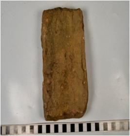 | Description / विवरण | A terracotta brick with rectangular shape of rough surface. |