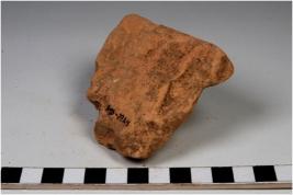 | Description / विवरण | A terracotta tile of uneven surface and medium fabric. |