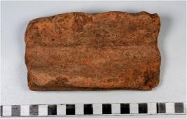 | Description / विवरण | A fragment of a terracotta channel elongated in shape of smooth surface. |