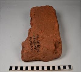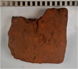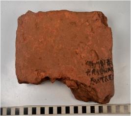 | Description / विवरण | A fragment of terracotta brick of rough surface. |