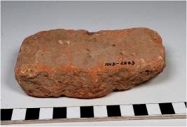 | Description / विवरण | A fragment of a terracotta tile, of coarse fabric, rough surface. |