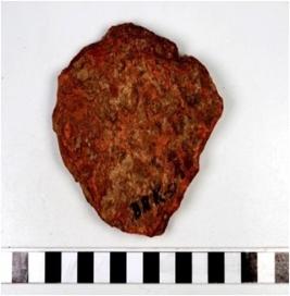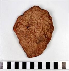 | Description / विवरण | A fragment of a terracotta tile with rough surface. |