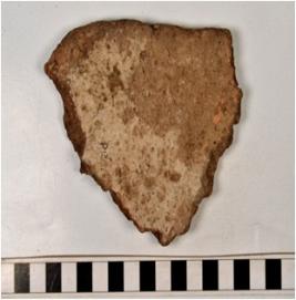 | Description / विवरण | A fragment of a terracotta tile of rough surface. |