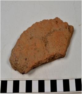 | Description / विवरण | A fragment of a terracotta tile, of coarse fabric. |