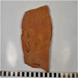 | Description / विवरण | A fragment of a terracotta tile, of coarse fabric. |