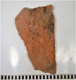 | Description / विवरण | A fragment of a terracotta tile, of coarse fabric. |