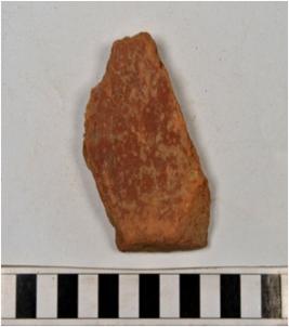 | Description / विवरण | A fragment of a terracotta tile, of coarse fabric. |