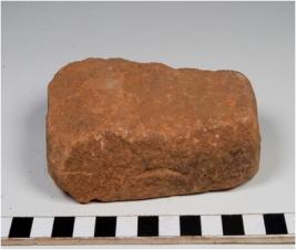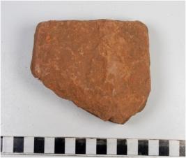 | Description / विवरण | A fragment of a stone tile, broken from three sides with smooth surface from one side and rough surface from other side. |