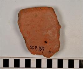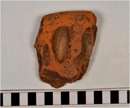 | Description / विवरण | A fragment of a terracotta tile of red ware having thumb impression on surface of coarse fabric. |