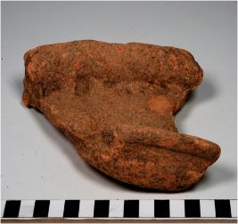 | Description / विवरण | A fragment of a terracotta channel elongated in shape of medium fabric. |