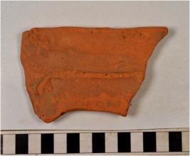 | Description / विवरण | A fragment of a terracotta tile of red ware having rough surface. |