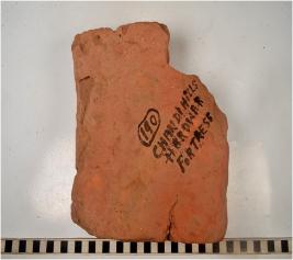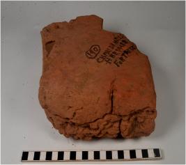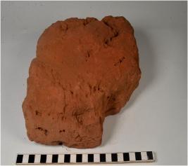 | Description / विवरण | A fragment of a terracotta brick of rough surface. |