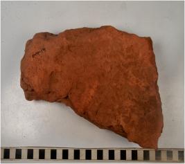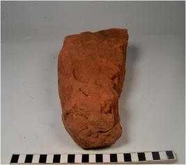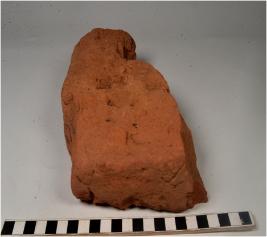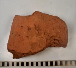 | Description / विवरण | A fragment of a terracotta brick of rough surface. |
