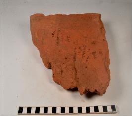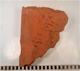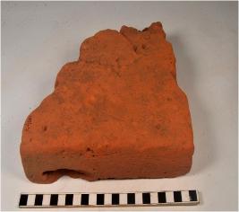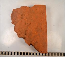 | Description / विवरण | A fragment of a terracotta brick of rough surface. |