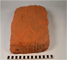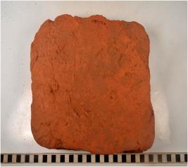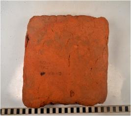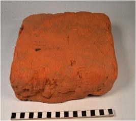 | Description / विवरण | A fragment of a terracotta brick square in shape of rough surface. |