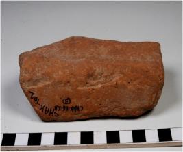| Description / विवरण | A fragment of a terracotta brick with rectangular in shape of coarse fabric. |