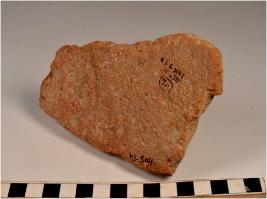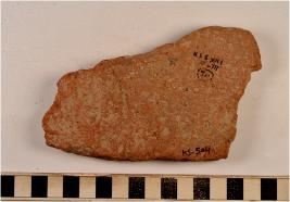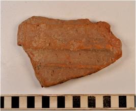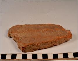 | Description / विवरण | A fragment of a terracotta tile of rough surface. |