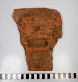 | Description / विवरण | A fragment of a terracotta tile of medium fabric. |