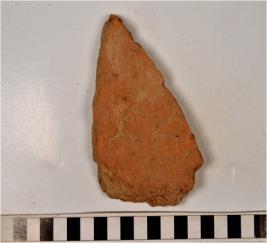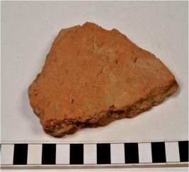 | Description / विवरण | A fragment of a terracotta tile of rough surface. |