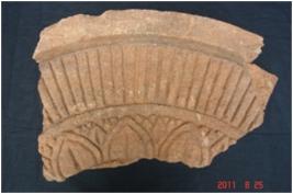 | Description / विवरण | It is a fragmented piece of the chhatravali, which is normally found from Buddhist sites. Upper portion of the object is decorated with lotus Madelion. Edges of the object is broken and eroded |