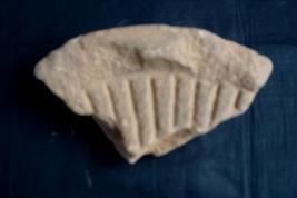 | Description / विवरण | It is a Fragmented Piece of the Chhatravali. It was found from the Buddhist Stupa Area. Upper portion of the object is designed with some straight lines. Border portion and side edges are broken. Lower portion is plane |