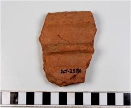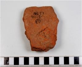 | Description / विवरण | A fragment of a terracotta tile having grooves and rough surface. |