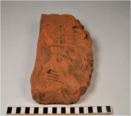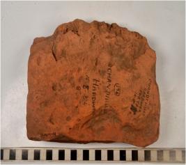 | Description / विवरण | A fragment of a terracotta brick rectangular in shape of rough surface. |