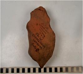 | Description / विवरण | A fragment of a terracotta brick of rough surface. |