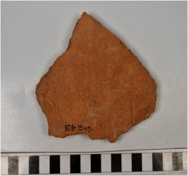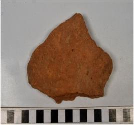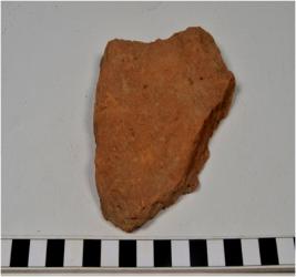 | Description / विवरण | A fragment of a terracotta tile of rough surface and coarse fabric. |