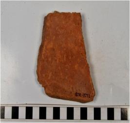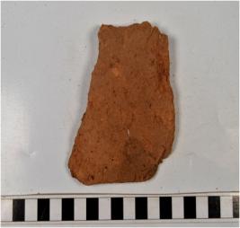 | Description / विवरण | A fragment of a terracotta tile of coarse fabric, smooth surface. |