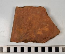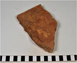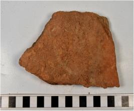 | Description / विवरण | A fragment of a terracotta tile of coarse fabric, smooth surface. |