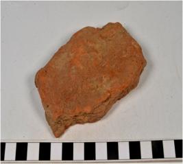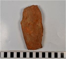 | Description / विवरण | A fragment of a terracotta tile of coarse fabric, smooth surface. |
