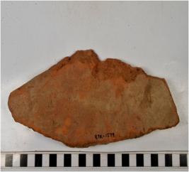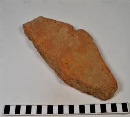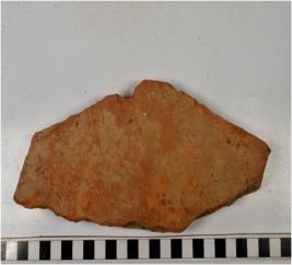 | Description / विवरण | A fragment of a terracotta tile of coarse fabric, smooth surface. |