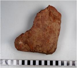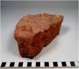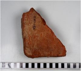 | Description / विवरण | A fragment of a terracotta brick of red ware of thick fabric, well levigated. |