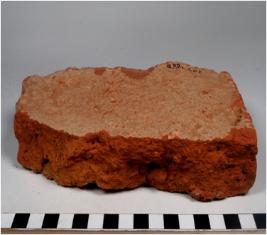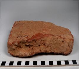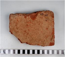 | Description / विवरण | A fragment of a terracotta brick of red ware of thick fabric, well levigated. |