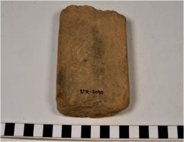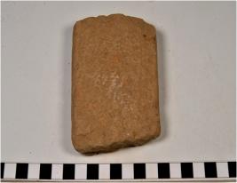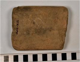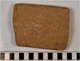 | Description / विवरण | A fragment of a stone tile with rough surface. |