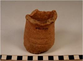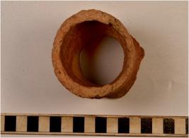 | Description / विवरण | A fragment of terracotta pipe of red ware with circular information of coarse fabric. |