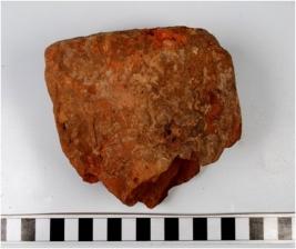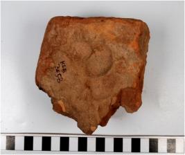 | Description / विवरण | A terracotta brick, showing finger impression of medium fabric. |