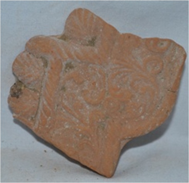 Terracotta brick only a part . It is decorated with a leaf & floral patterns running in horizontal form.