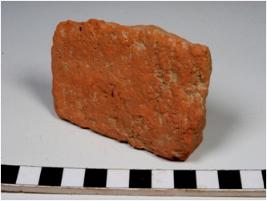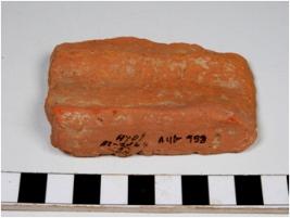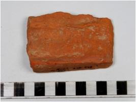 | Description / विवरण | A terracotta tile having deep impression rough surface of medium fabric. |