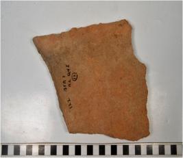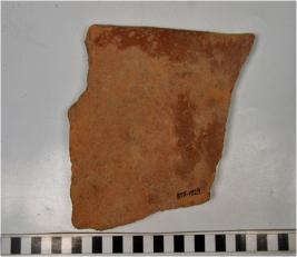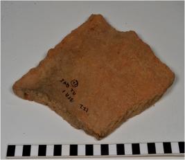 | Description / विवरण | A fragment of a terracotta tile of rough surface and coarse fabric. |